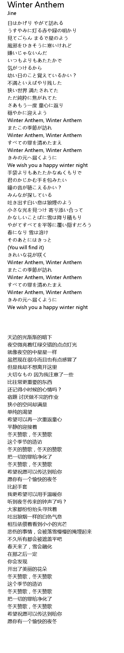 | [03:20.600] | Winter Anthem, Winter Anthem |
