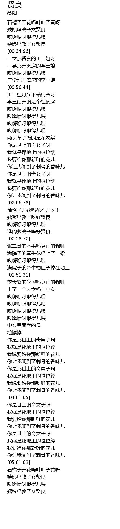 | Song | 贤良 |