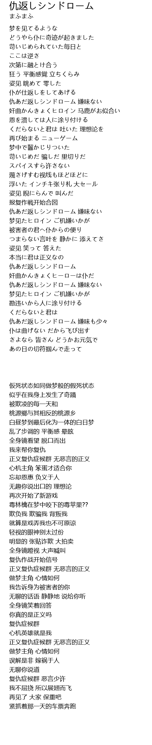 | [01:37.490] | 仇あだ返しシンドローム 嫌味ない |