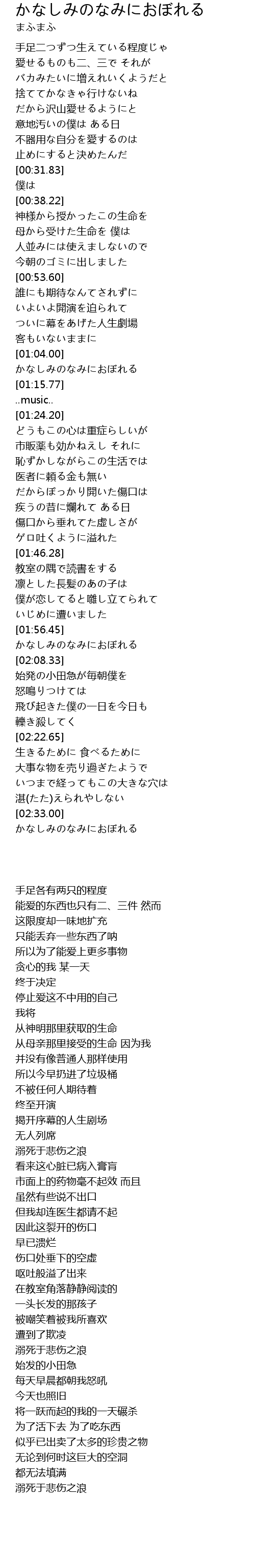 | [02:33.29] | かなしみのなみにおぼれる |