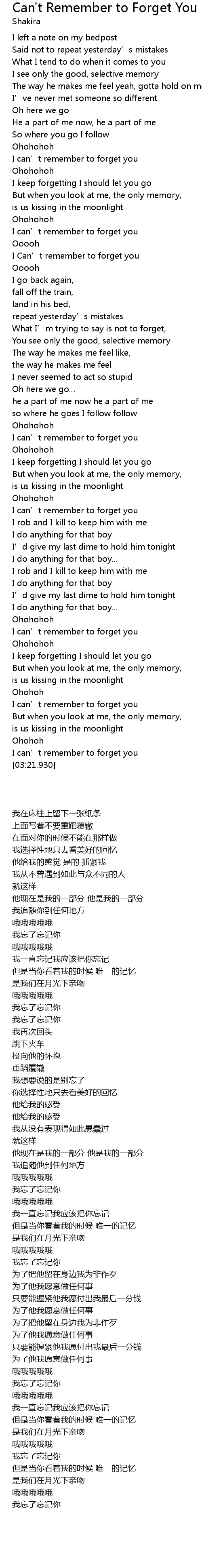 | [00:39.260] | I can' t remember to forget you |