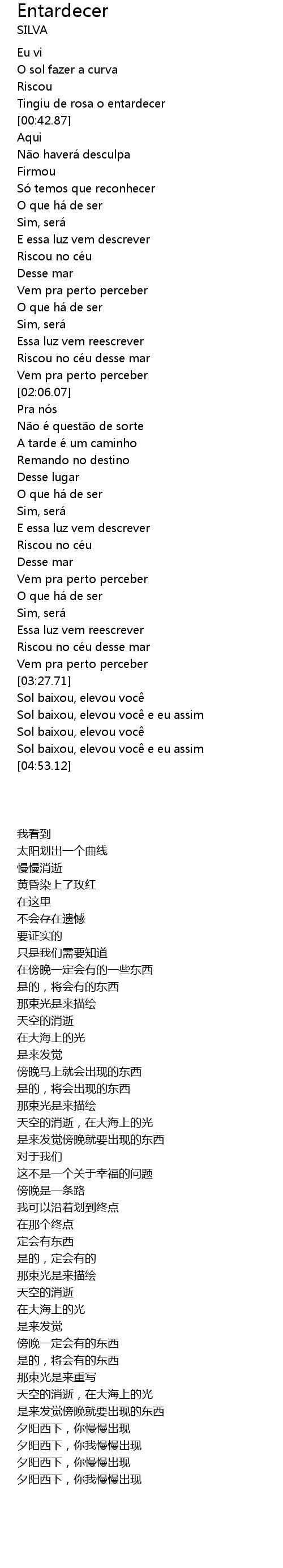 | [00:28.38] | O sol fazer a curva |