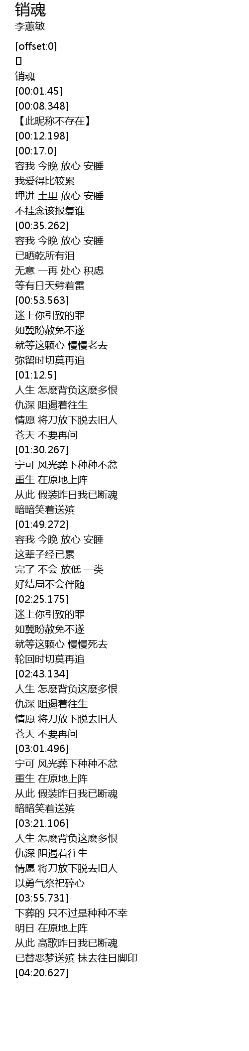 | [04:05.425] | 从此 高歌昨日我已断魂 |