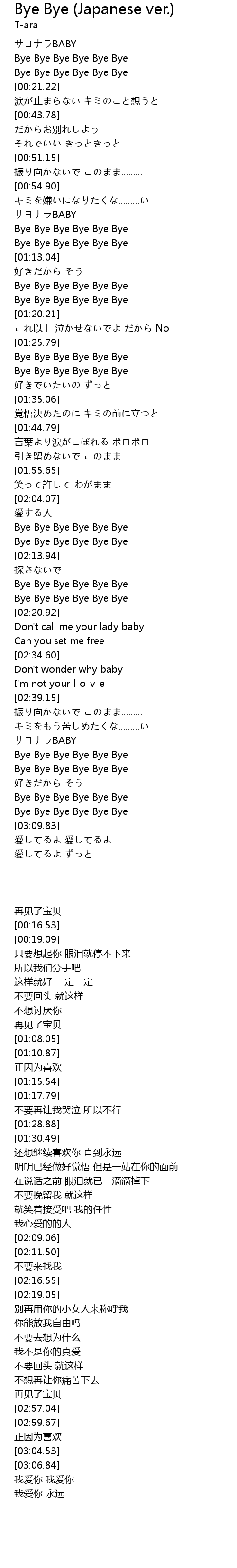 | [02:19.05] | Bye Bye Bye Bye Bye Bye |