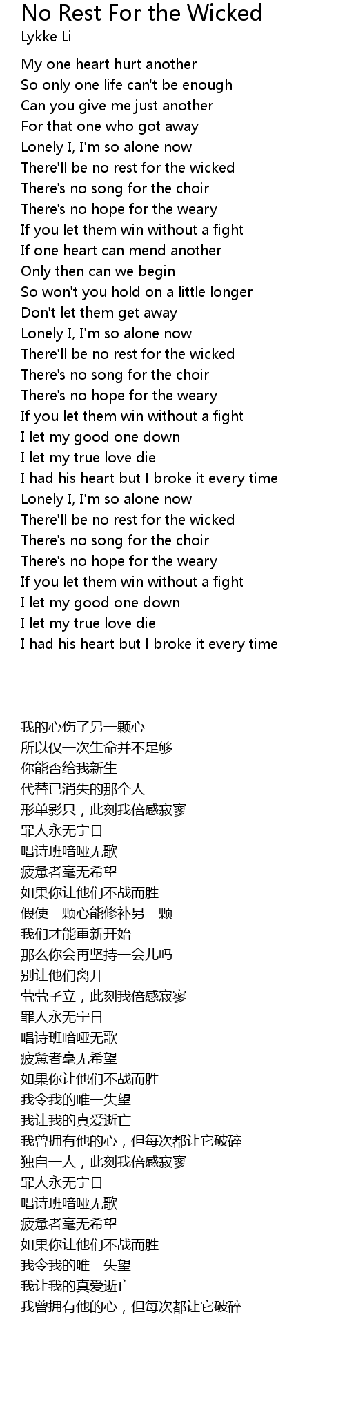 There'll be no rest for the wicked |