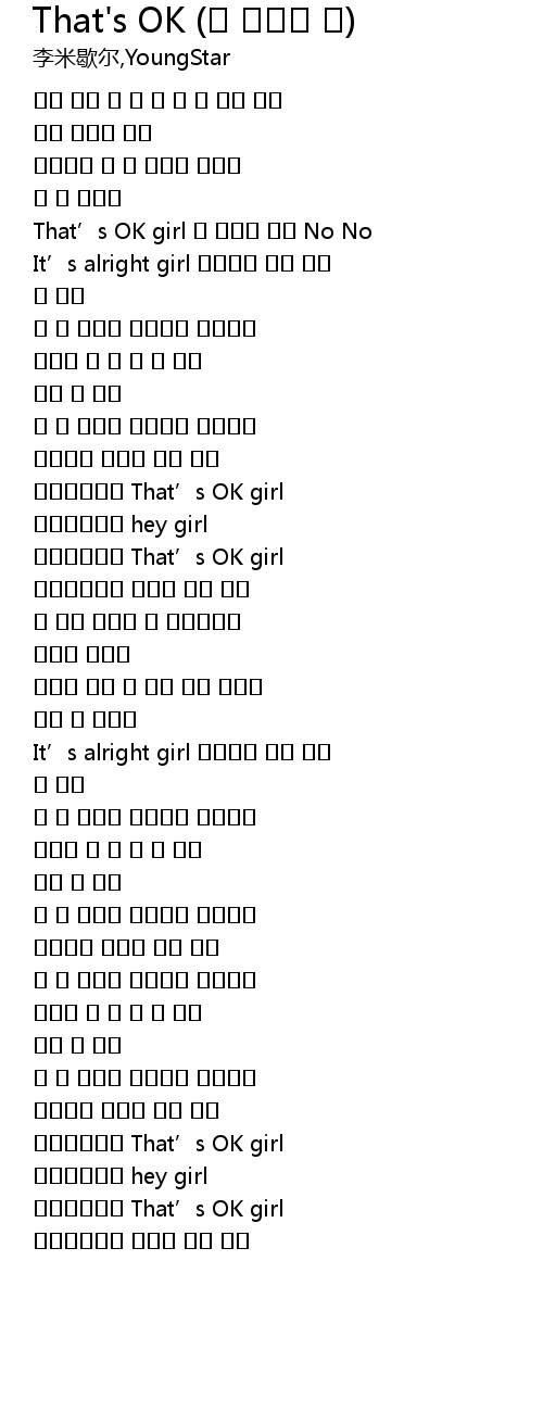That’s OK girl 난 괜찮아 아냐 No No |