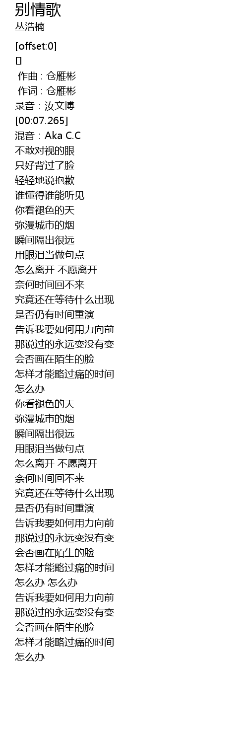 | [00:01.00] | 作词 : 仓雁彬 |