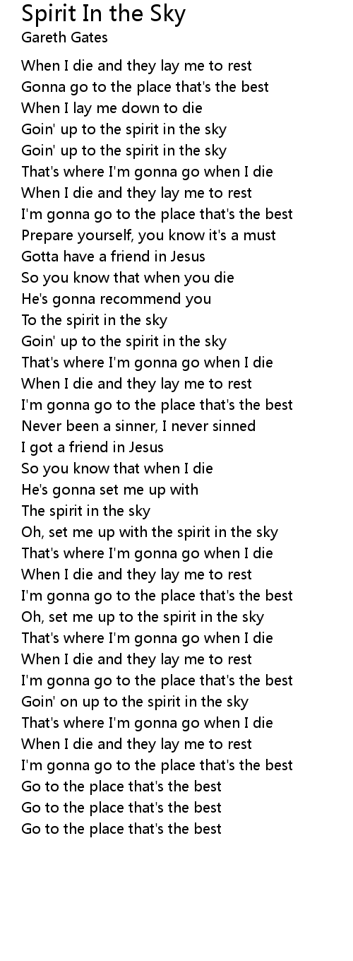 Oh, set me up to the spirit in the sky