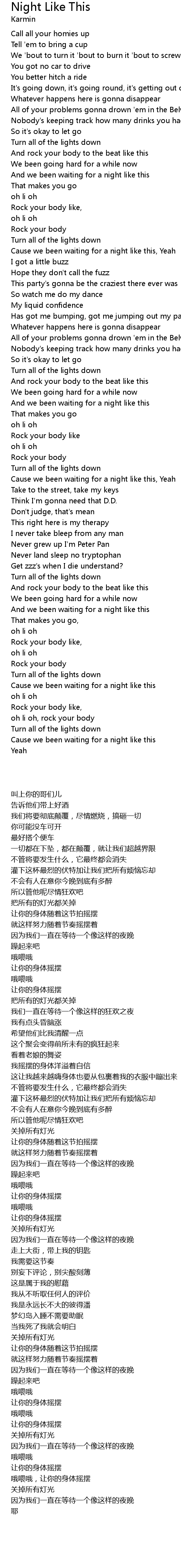 | [00:53.88] | Cause we been waiting for a night like this, Yeah |