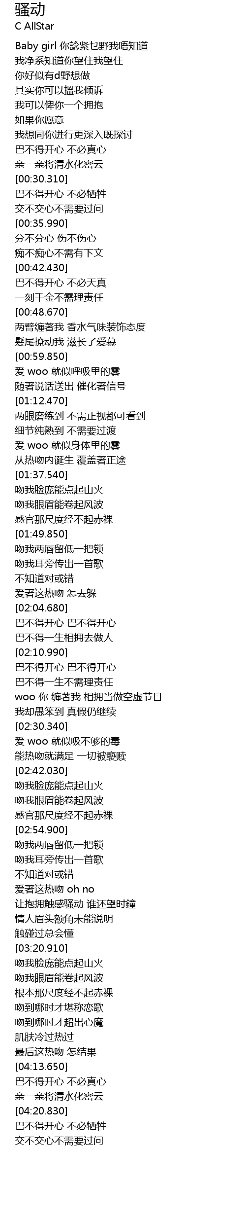 | [00:12.370] | Baby girl 你諗紧乜野我唔知道 |