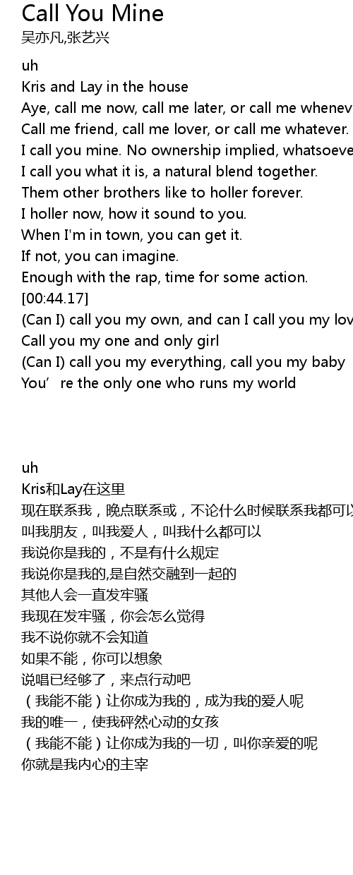 | [00:46.40] | (Can I) call you my own, and can I call you my lover |