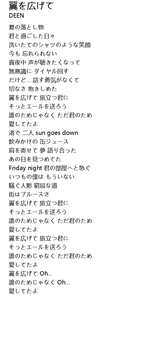 | Song | 翼を広げて |