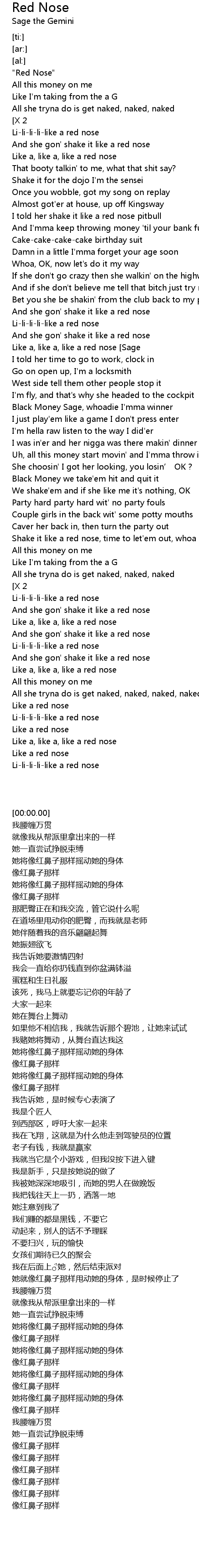 | [00:00.00] | "Red Nose" |