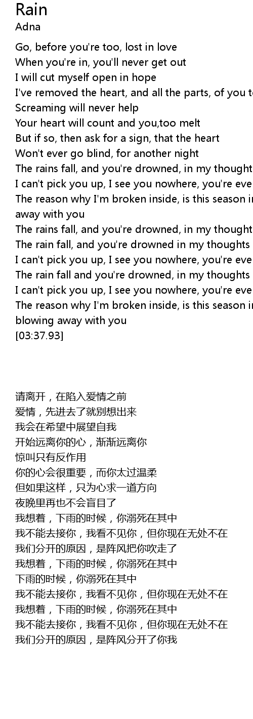 | [02:49.08] | The rain fall, and you're drowned in my thoughts |