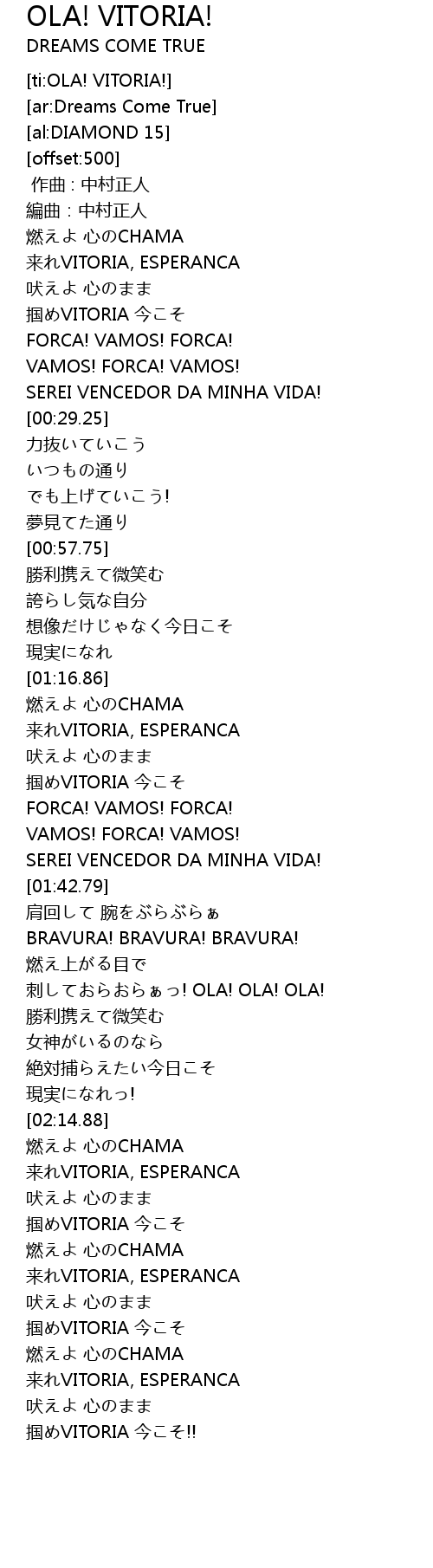 | [00:15.40] | 掴めVITORIA 今こそ |