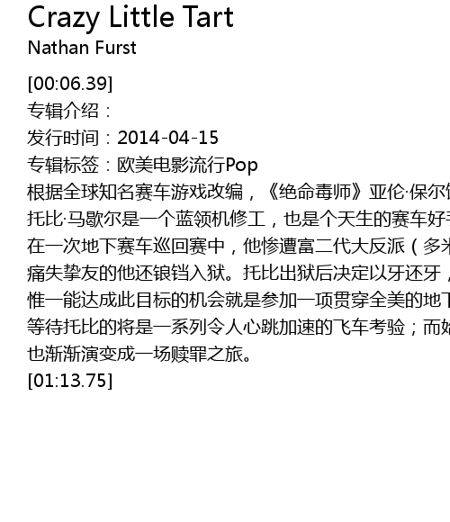 | [00:18.97] | 专辑标签:欧美电影流行Pop |