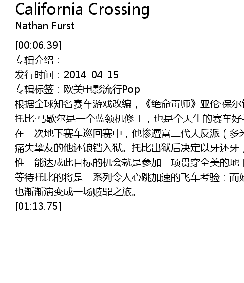 | [00:14.98] | 发行时间:2014-04-15 |
