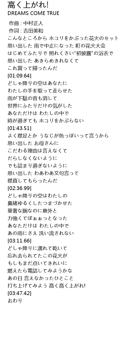 | [00:43.20] | 思い出した 雨で中止になった 町の花火大会 |
