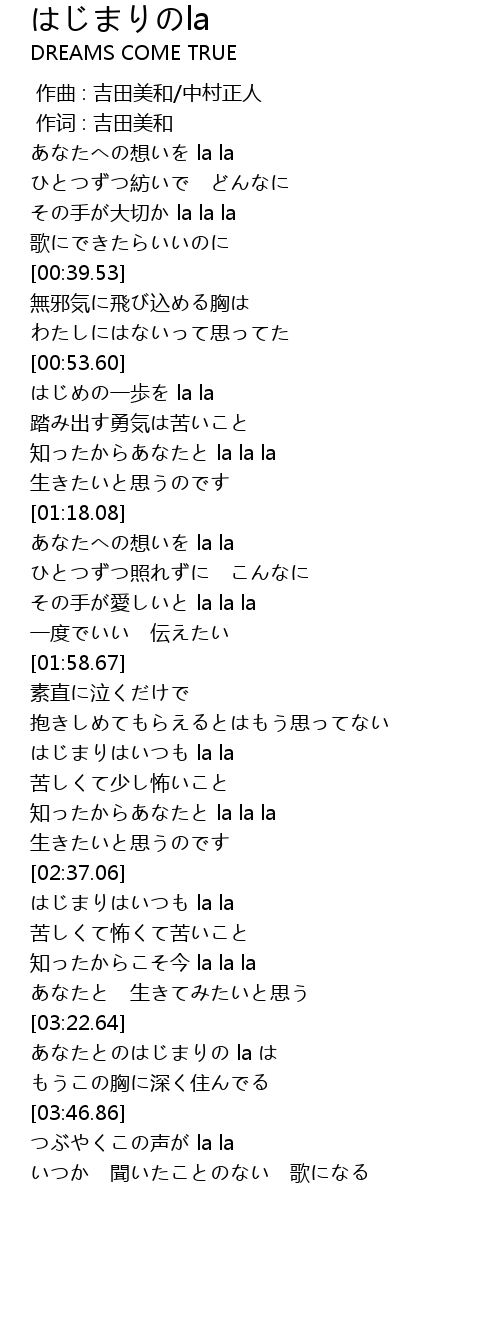 | [00:00.00] | 作曲 : 吉田美和/中村正人 |