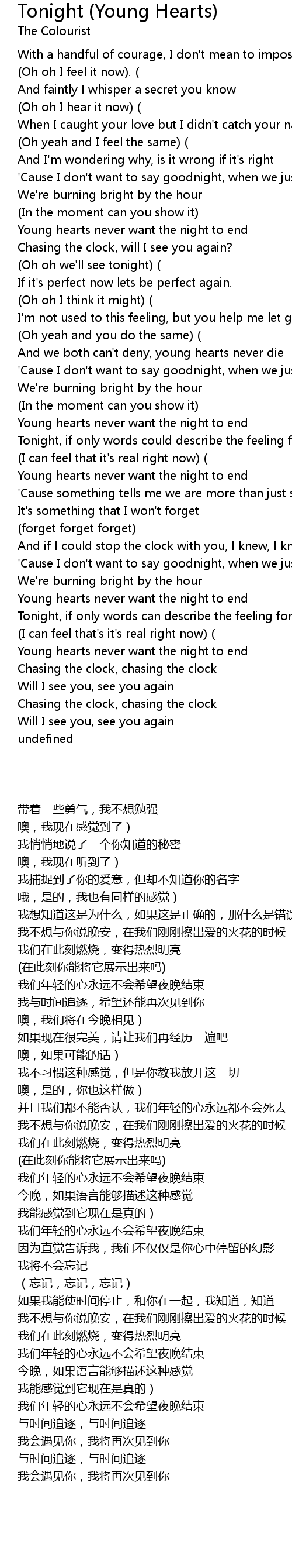 | [00:49.56] | Young hearts never want the night to end |