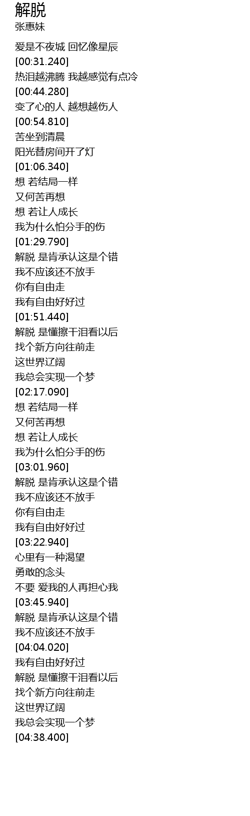 | [03:48.710] | 解脱 是肯承认这是个错 |
