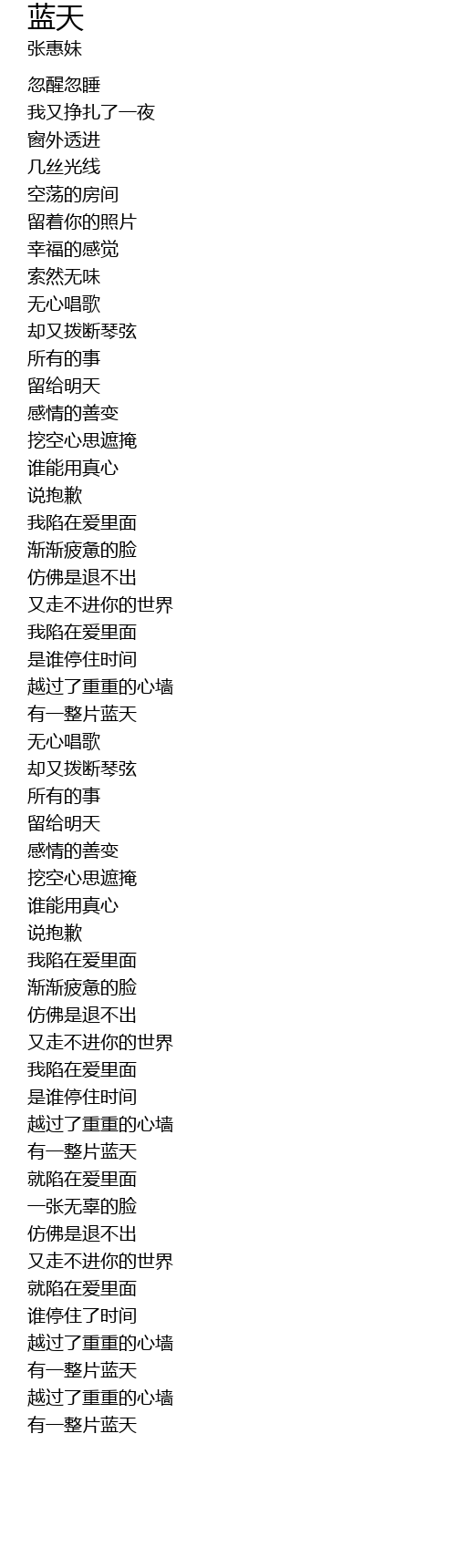 | [03:50.150] | yǒu yī zhěng piàn lán tiān |