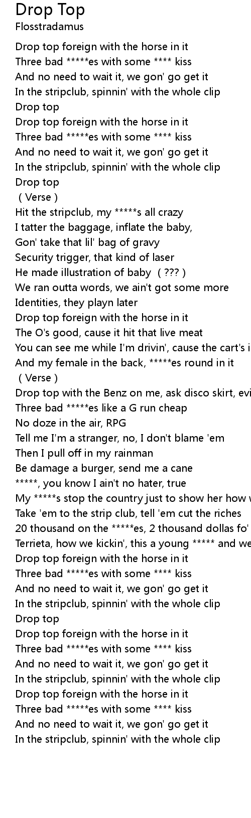 | Drop top with the Benz on me, ask disco skirt, evidently | |