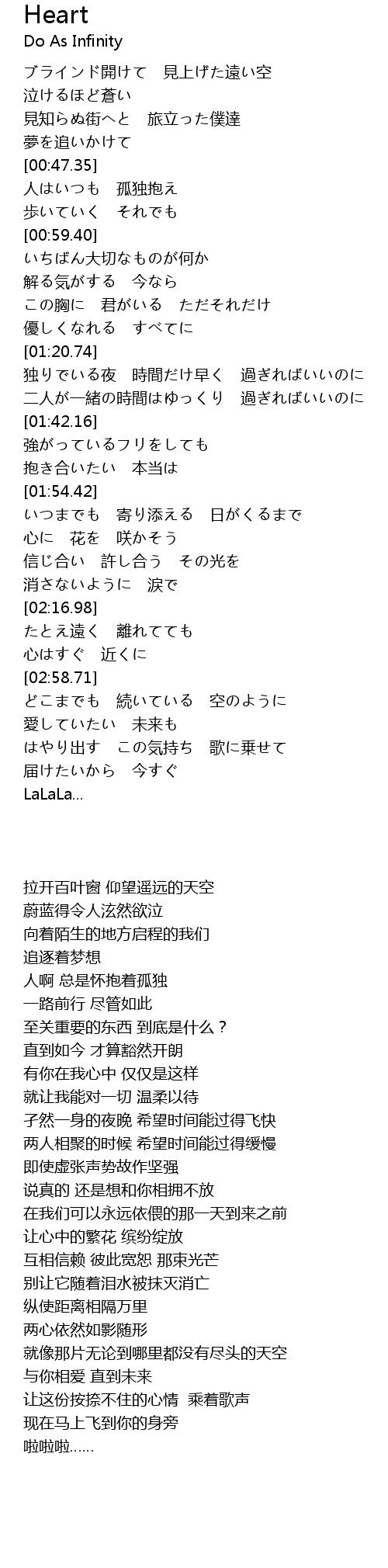 | [03:01.17] | どこまでも 続いている 空のように |