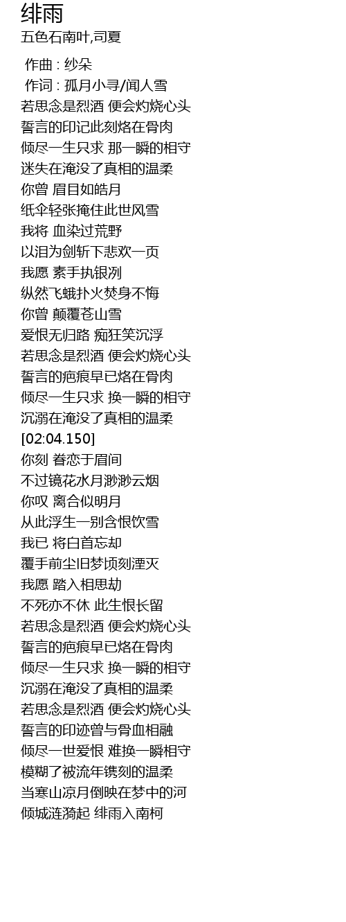 | [00:01.00] | 作词 : 孤月小寻/闻人雪 |