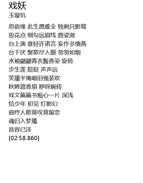 | [01:59.480] | 戏文篇篇书痴心一片 深浅 |