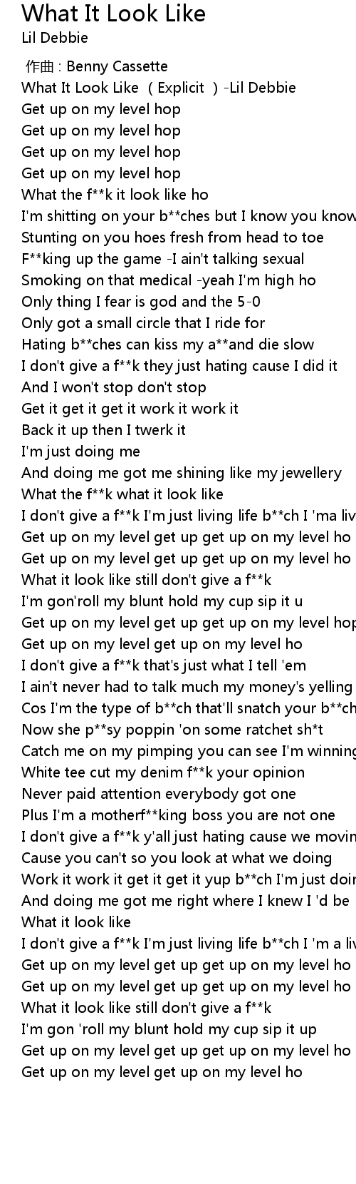 | [00:00.00] | What It Look Like (Explicit )-Lil Debbie |