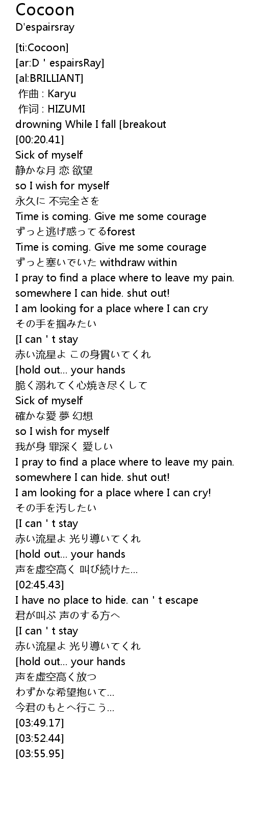 | [00:45.73] | ずっと逃げ惑ってるforest |