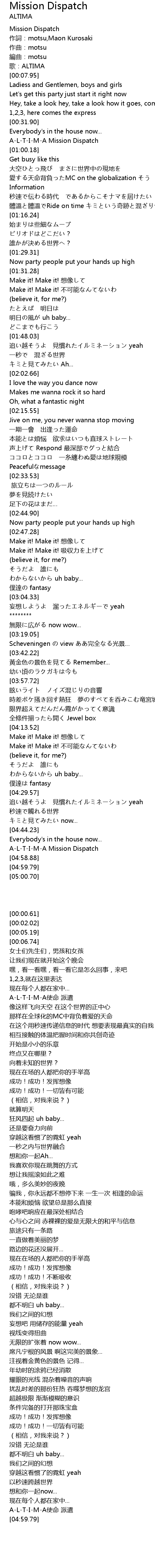 | [04:54.60] | A-L-T-I-M-A Mission Dispatch |