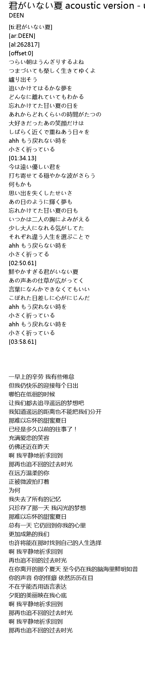 | [01:02.24] | 忘れかけてた甘い夏の日を |