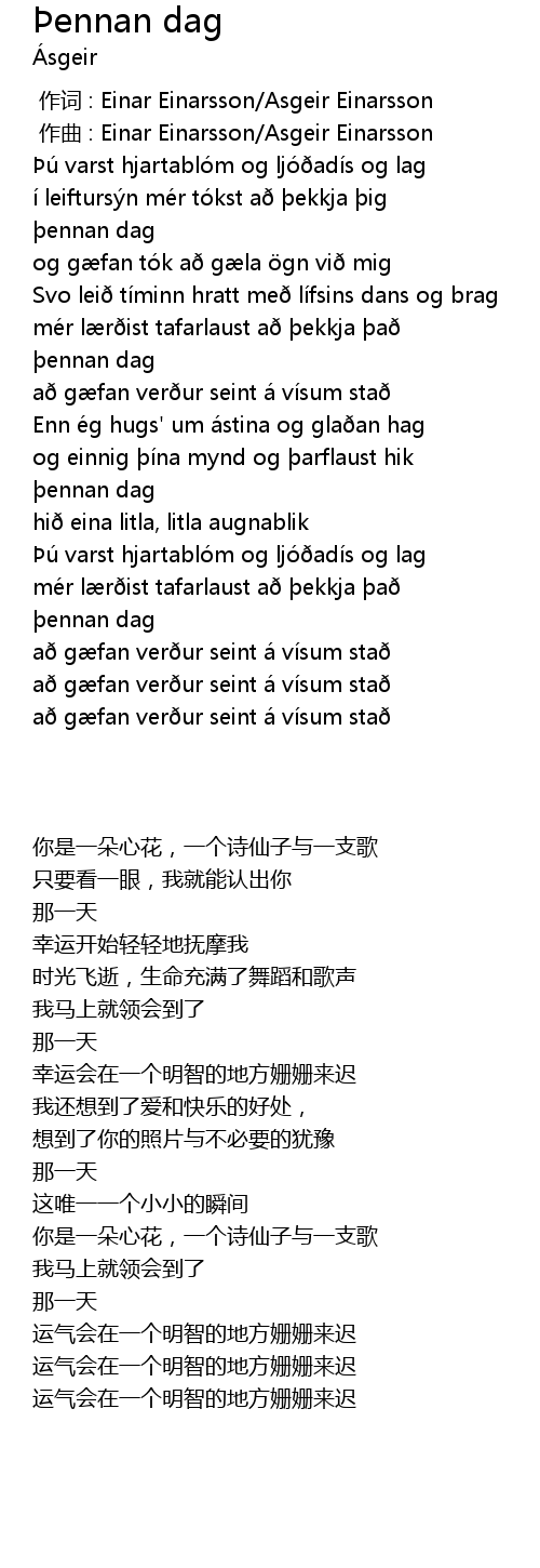 | [00:01.000] | 作曲 : Einar Einarsson/Asgeir Einarsson |