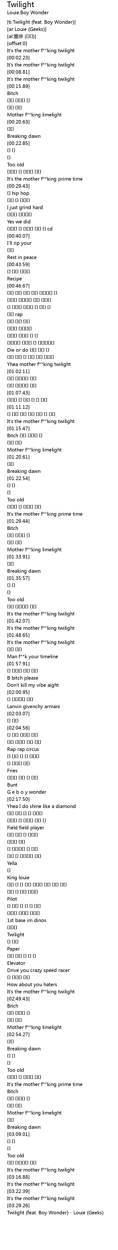 | [ti:Twilight (feat. Boy Wonder)] | |