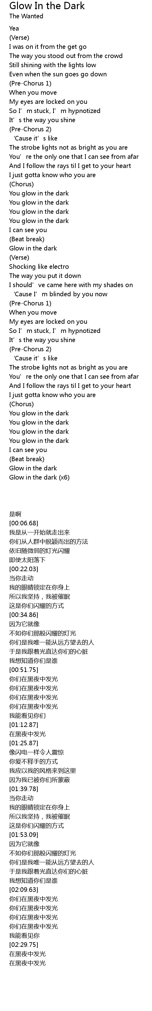 | [02:45.77] | Glow in the dark (x6) |