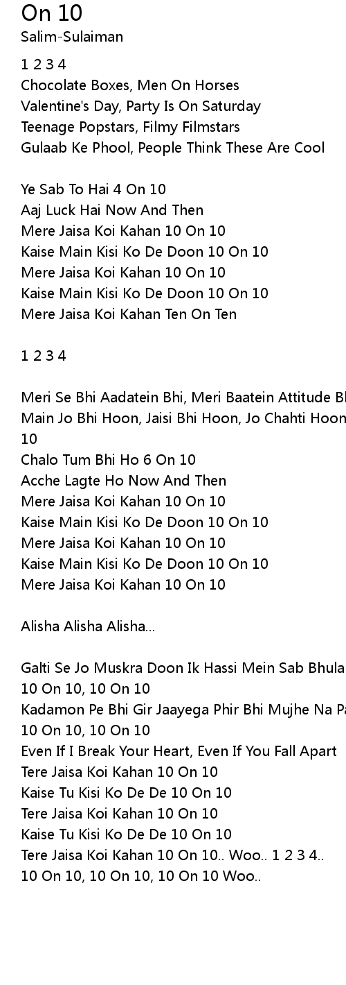 Meri Se Bhi Aadatein Bhi, Meri Baatein Attitude Bhi, 10 On 10, 10 On 10 |
