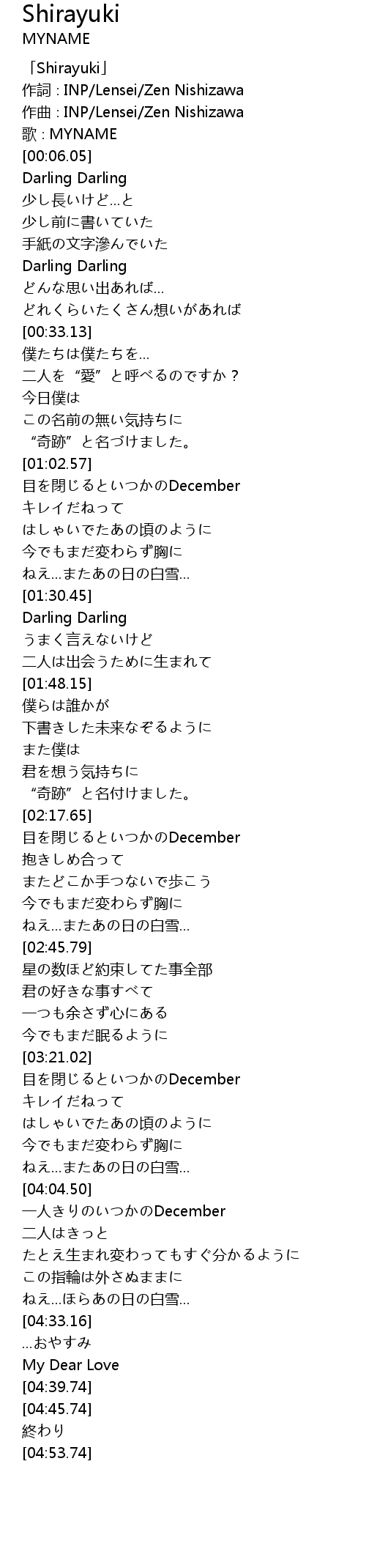 | [00:00.05] | 「Shirayuki」 |