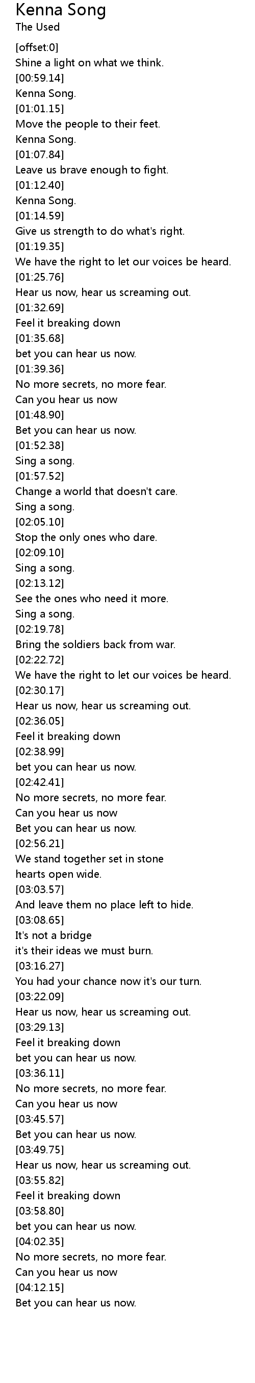 Hear us now, hear us screaming out. |