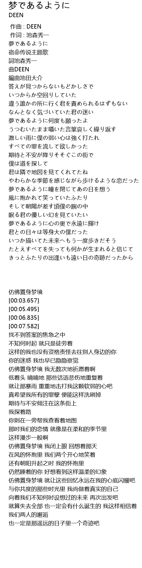 | [03:20.463] | 夢であるように心の奥で永遠に輝け |