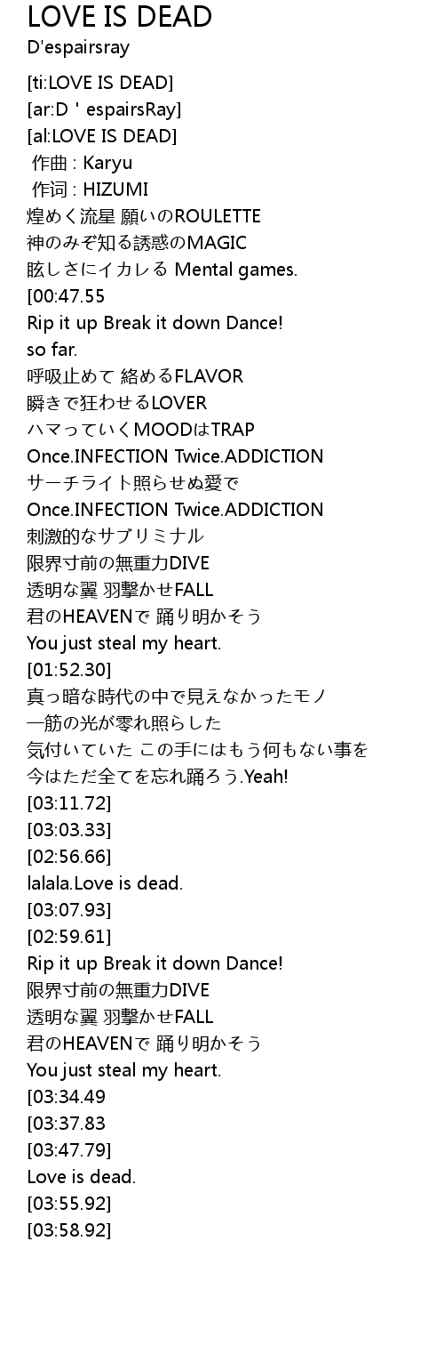 | [03:41.61][03:34.49] | lalala. Love is dead. |