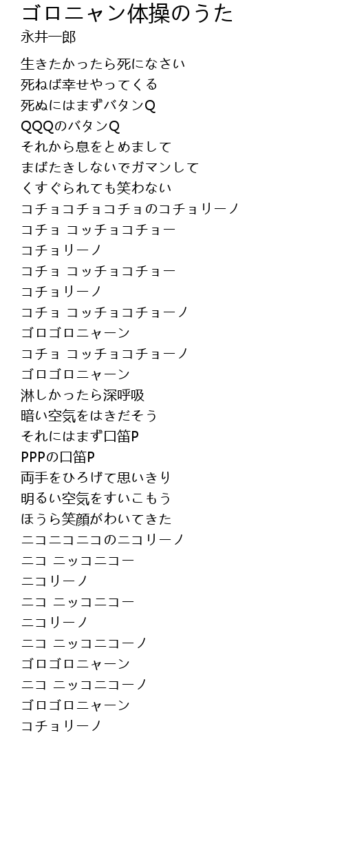 | Song | ゴロニャン体操のうた |