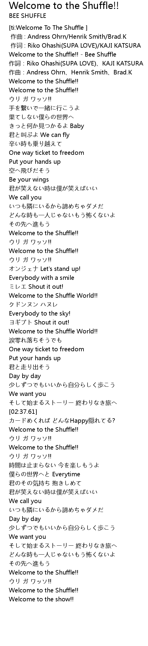| [02:58.93] | Welcome to the Shuffle!! |