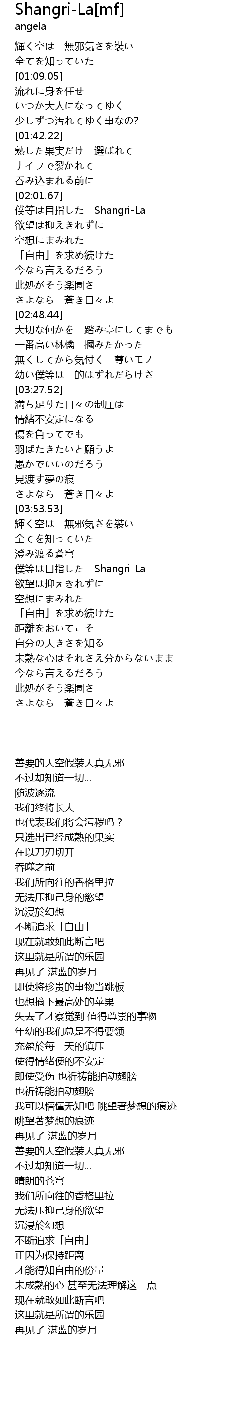 | [02:09.69] | 僕等は目指した Shangri-La |