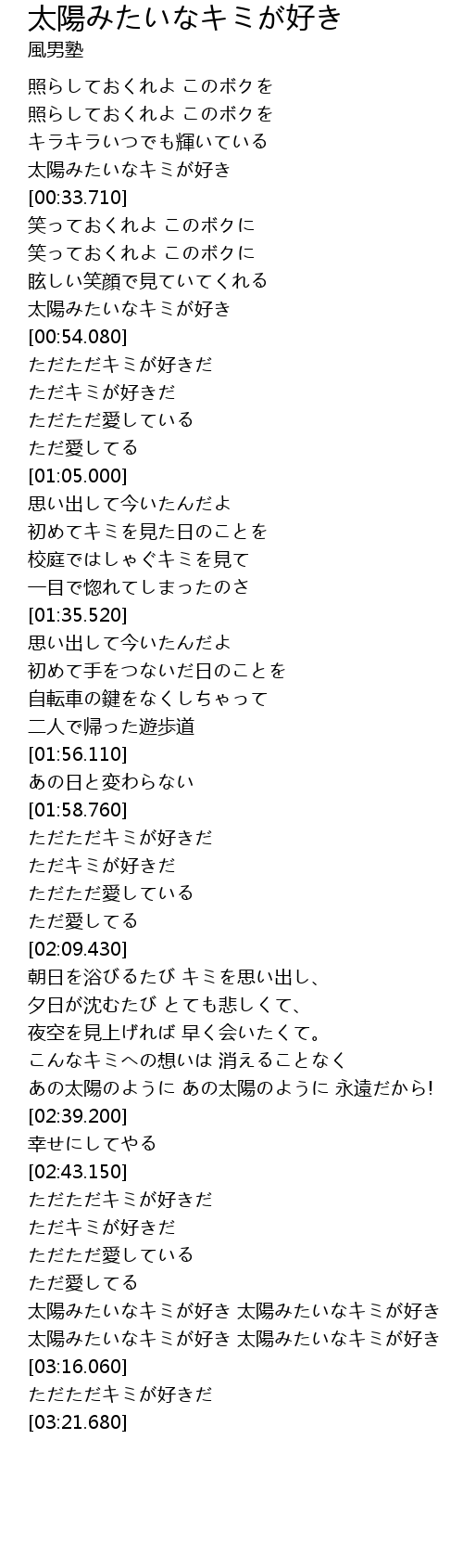 | [03:04.720] | 太陽みたいなキミが好き 太陽みたいなキミが好き |