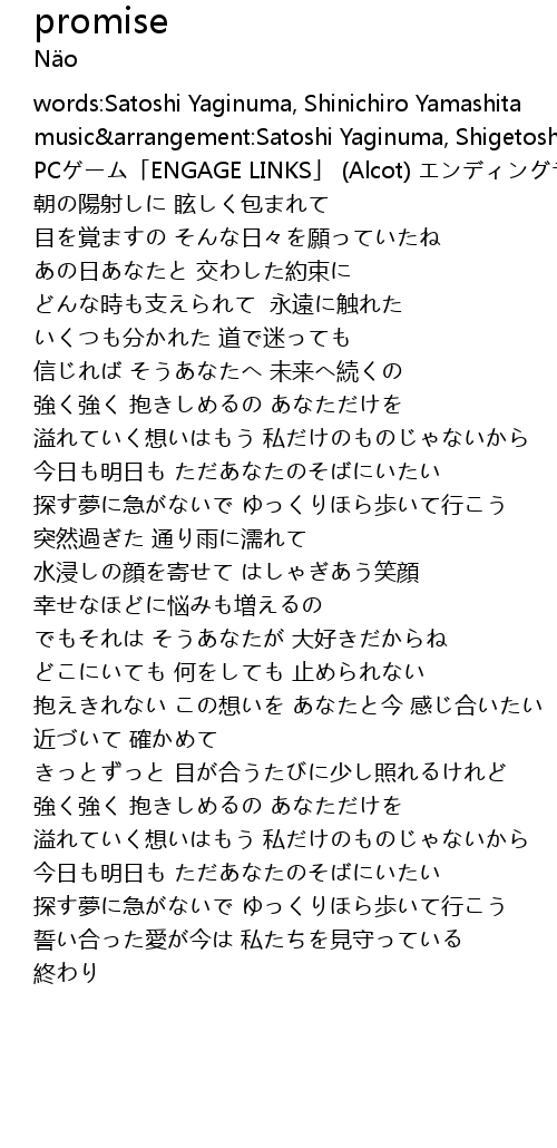 | [00:21.56] | PCゲーム「ENGAGE LINKS」 (Alcot) エンディングテーマ |