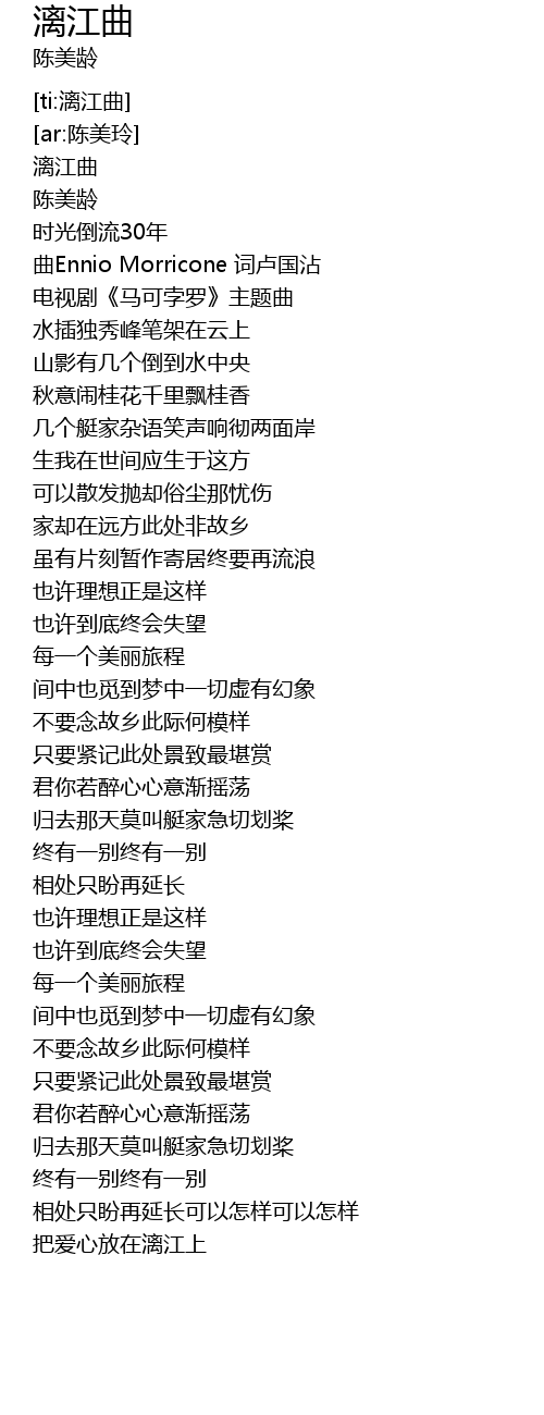 | [00:22.65] | 曲Ennio Morricone 词卢国沾 |