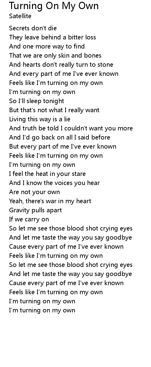 I'm turning on my own |