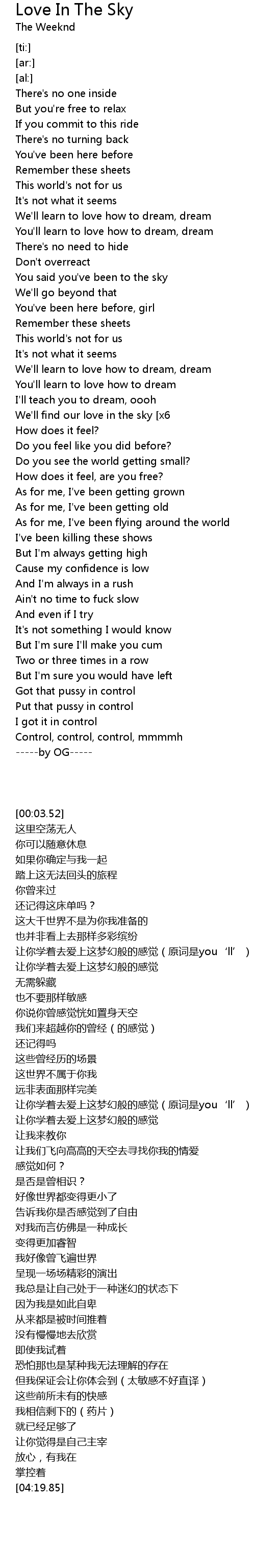 | [02:15.62]We'll find our love in the sky [x6] |
